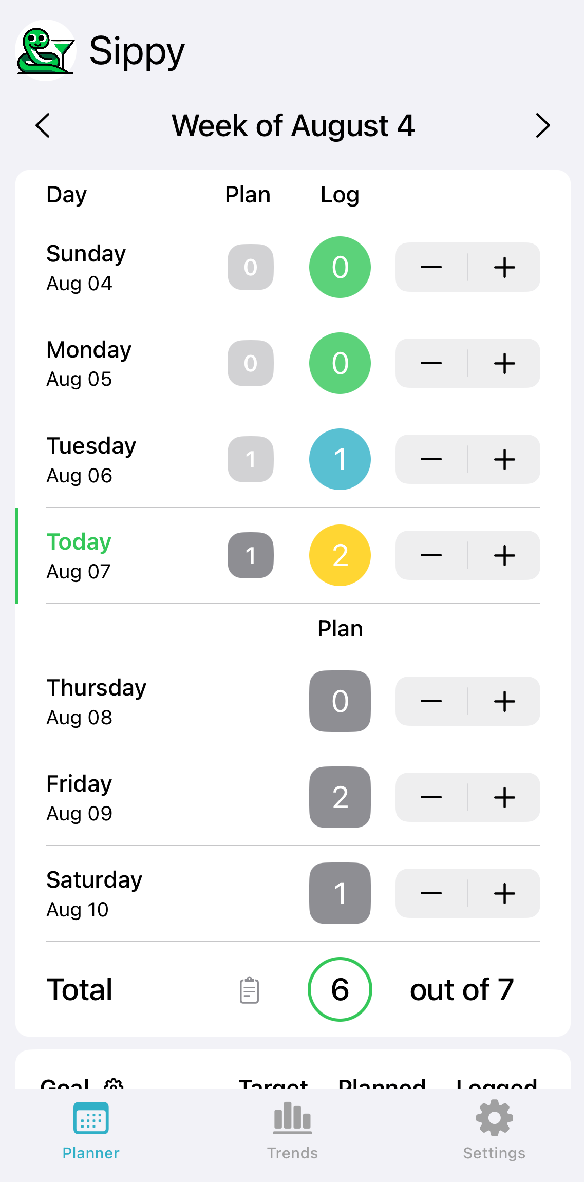 Welcome to Sippy, the iOS app designed to help you plan and track your alcoholic drinks effortlessly.